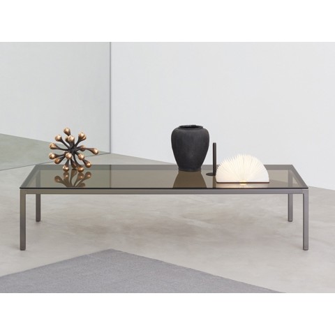 Desalto HELSINKI 30 Tavolino basso rettangolare in acciaio e cristallo