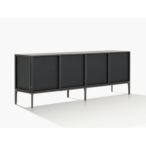 Poliform AIKO Credenza in legno e vetro con ante a battente