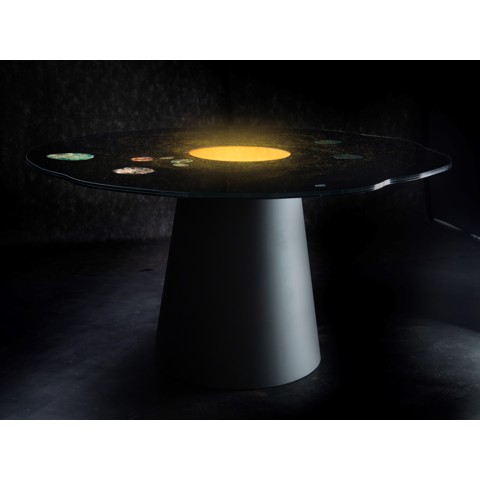 Unica by Tecnotelai LUNA ROSSA™ Tavolo rotondo in acciaio inox e vetro