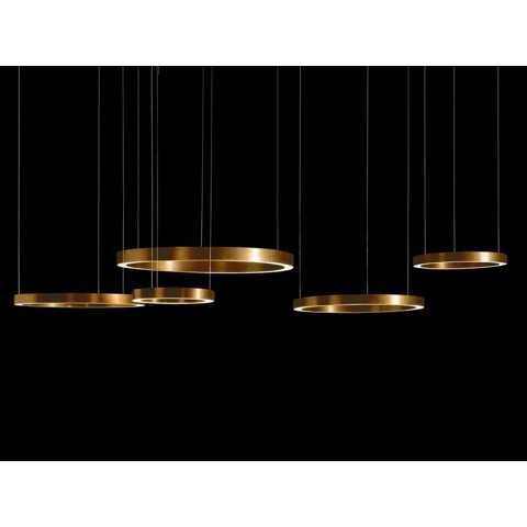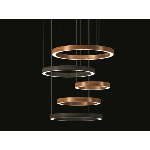 Light Rings è una lampada a sospensione a led dimmerabile (indice di efficienza energetica A), a risparmio energetico con luce calda. Realizzata a mano e formata da anelli metallici, è disponibile in diverse composizioni, diverse dimensioni e tipologie di emissione luminosa. Trasformatori inseriti nel rosone a soffitto, anelli alimentati a bassa tensione tramite cavi di sospensione. Disponibile con luce extra calda (senza costi aggiuntivi) Solo per uso interno. Pulsante dimmerabile. Altri sistemi di regolazione disponibili su richiesta.Finiture disponibili: Acciaio brunito nero, Platino brunito, Titanio brunito, ottone brunito, ottone brunito nero, H-Silver o H-Silver nero.