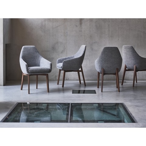 La sedia BACK ME UP rende possibile una seduta comoda e confortevole grazie al suo design e ai braccioli. Le sedie della collezione Back me up sono disponibili in pelle e tessuto. E con gambe in noce, quercia bianca oliata o rovere color carbone.