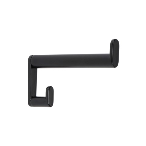 PIN (Design Marc Venot)Appendiabiti a parete con tre o cinque ganci. Ganci in legno massello laccato nero e ottone lucido. Fissaggi verniciati a polvere nero.
