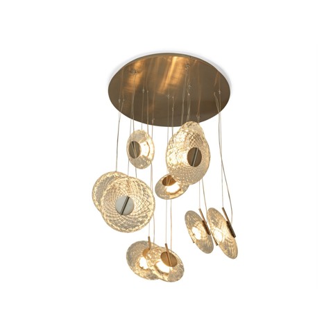 SkLO DRAPE CIRCLE 18 Lampada a sospensione in vetro e ottone