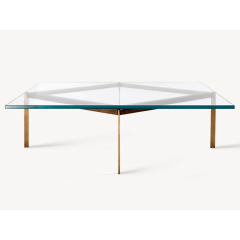 BassamFellows PLANK Tavolino quadrato in vetro con base in metallo