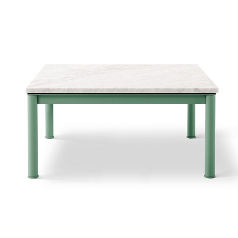 Cassina 10 TABLE EN TUBE BASSE, GRAND MODÈLE Tavolino da giardino quadrato in marmo e acciaio