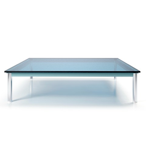 Cassina 10 TABLE EN TUBE BASSE, GRAND MODÈLE Tavolino quadrato in acciaio e vetro