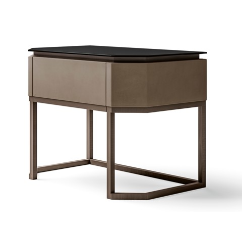 CPRN HOMOOD STARLIGHT Comodino rettangolare in metallo, pelle e vetro