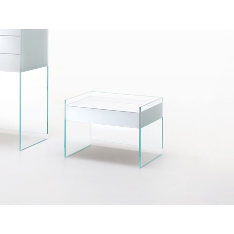 Glas Italia FLOAT Comodino rettangolare in cristallo con cassetti