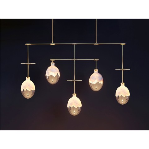 KAIA GLOW 5 Lampada a sospensione in cristallo e cartapesta