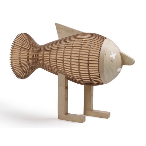 LZF WALKING FISH Lampada da terra fatta a mano in legno impiallacciato