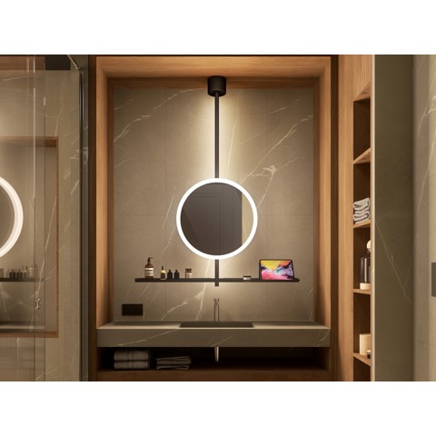 Damiano Latini IO Specchio da soffitto con illuminazione integrata e mensole