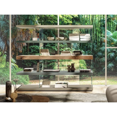 Lago AIR 1465 Libreria a giorno autoportante in legno e vetro